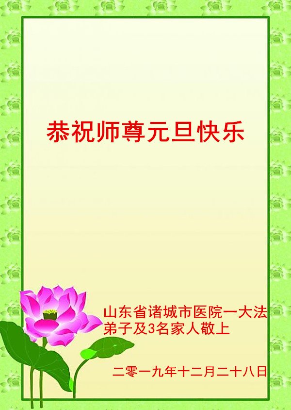 山东省潍坊市诸城市医院一大法弟子及三名家人恭祝师尊元旦快乐!