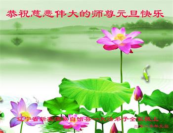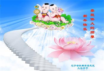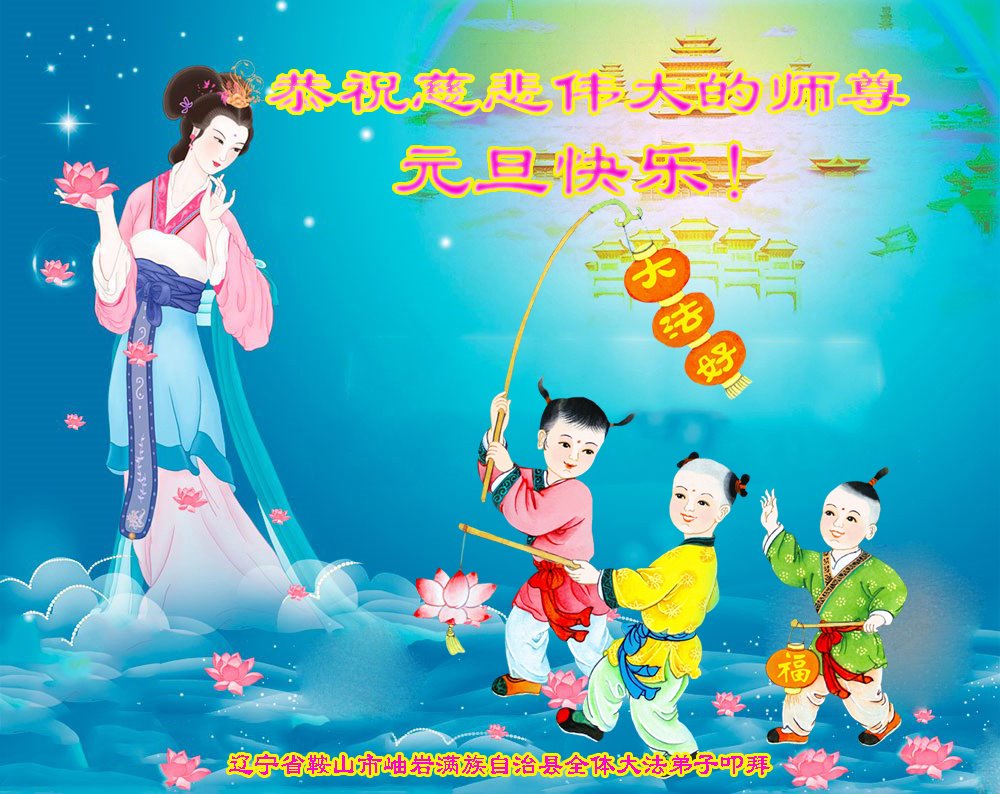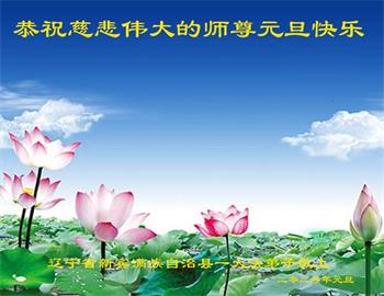 辽宁省大石桥市一大法弟子家属祝师尊新年好!新年快乐! 感谢师尊洪传大法,让有缘人返本归真。 辽宁省抚顺县大法弟子恭祝师尊新年快乐!