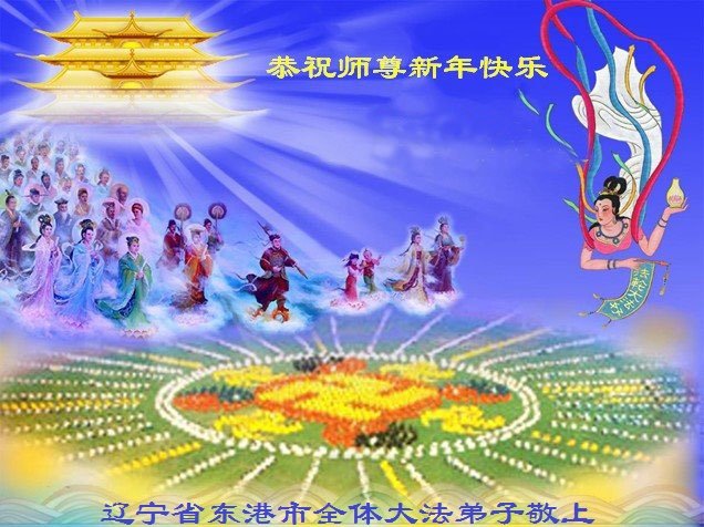 在浩瀚的天宇间,我们曾带着洪大的誓约随师而来,在正法即将结束之时,我们东港市全体大法弟子,一定谨记师尊的教诲,在一思一念上精進实修,做好三件事,迎接法正人间的辉煌洪世!请师尊放心! 辽宁抚顺新宾一朝鲜族大法弟子恭祝师尊元旦快乐!