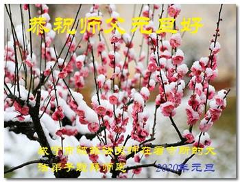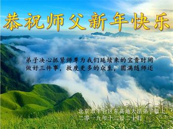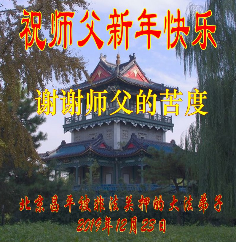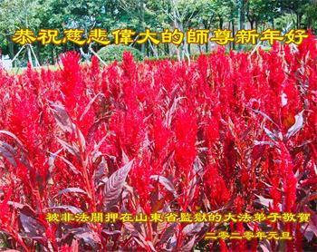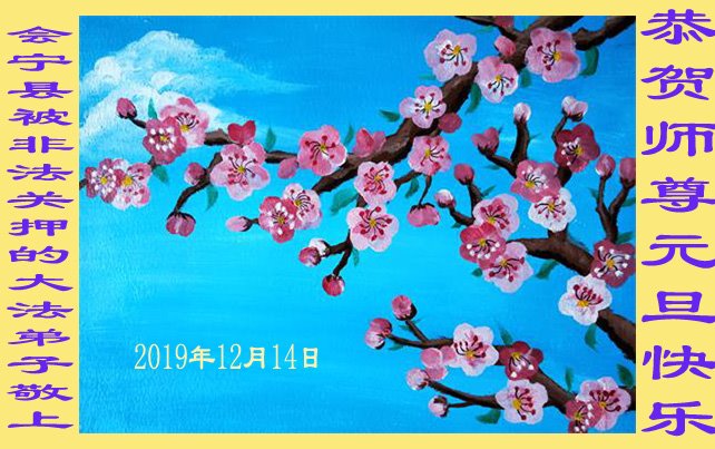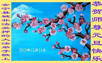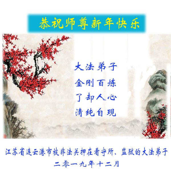 | 【明慧网二零一九年十二月三十一日】法轮大法传世27年,广传世界一百多个国家,上亿人修炼真善忍。只有中共因假、恶、暴的本性而仇视正法正道,数以百万计的法轮功学员被非法关押、判刑,甚至被中共活摘人体器官牟利。 魔难中,大法弟子没有倒下,无论在黑狱的污浊中遭受怎样的迫害,白莲愈洁,寒梅愈香。在二零二零年元旦到来之际,被非法关押在中国大陆各地看守所、监狱的法轮功学员通过各种途径,表达对李洪志师父的感恩与问候!恭祝师尊新年好! 被非法关押的大法弟子写道: 得法的生命 象似美好的诗篇 助师正法 是众神仰慕的荣耀 救度众生 不忘下世前的诺言 高墙电网 锁不住自由的意志 无畏的心 围绕在师父身边 河南省焦作市身陷囹圄的大法弟子恭祝至高无上的师父元旦快乐!吉林省被非法关押大法弟子恭祝师尊元旦快乐!吉林省被非法关押大法弟子敬上 新疆被非法关押大法弟子恭祝师尊新年快乐!谢谢师尊的一路看护,弟子们才能在恶劣的环境下仍能正念正行做好三件事,不负使命,不负誓约,跟师父回家。 江苏省连云港市被非法关押在看守所、监狱的大法弟子恭祝慈悲伟大的师尊新年快乐!熔炼 大法弟子 金刚百炼 了却人心 清纯自现 山东一大法弟子携被非法关押狱中的丈夫及全家恭祝师尊新年快乐!2020新年之际,山东大法弟子携全家(丈夫被冤判七年,还在狱中),祝愿我们伟大的师尊:新年快乐! 弟子和孩子每个月都去看望狱中的丈夫。他在狱中状态良好,经常鼓励我和孩子要多学法,这只有我们修正法的弟子才能做到! 弟子坚信:只要去丈夫那里肯定会给他带去师尊和同修们的加持正念,弟子也经常提醒丈夫多发正念,别忘了师尊就在你身边!请师尊放心。师尊二十年的苦度,在有限的时间里弟子要精進不止,圆满随师还,愿我师尊笑。 黑龙江被非法关押的一名大法弟子恭祝师尊新年好!身在牢笼 心系众生 修好自己 多救人 2019年12月22日 四川省开江县被绑架关押的大法弟子敬祝慈悲伟大的师尊元旦快乐!监狱锁住我的身,岂能关闭我的心! 感恩的翅膀啊,飞往大洋彼岸, 跪拜师尊: 恭贺师父元旦好! 敬祝师父多欢欣! 吉林省身陷囹圄大法弟子问候师尊新年快乐!被非法关押在杭州看守所和浙江女子监狱的大法弟子恭祝慈悲伟大的师父新年好!彩云追月 经过囚窗前 回天的路 闪耀在彩云间 红魔疯狂 怎能摧毁觉者的正信 得法的生命 象似美好的诗篇 助师正法 是众神仰慕的荣耀 救度众生 不忘下世前的诺言 高墙电网 锁不住自由的意志 无畏的心 围绕在师父身边 被非法关押在湖南女子监狱的大法弟子恭祝慈悲伟大的师父新年快乐!被非法关押在狱中的大法弟子恭祝慈悲伟大的师父新年快乐! 师父您辛苦了!弟子们想念您!因弟子们没做好,被非法关押在湖南女子监狱。不管环境怎么恶劣,我们都会坚修大法到底,紧跟师父回家,愿师父少一份操心。 被非法关押在湖南女子监狱的大法弟子叩拜 河北省保定市易县一中年大法弟子恭祝师父新年快乐!师父您好!师父您辛苦了! 走过二十多年的修炼路程,弟子无限感恩师父的慈悲苦度! 难忘那一年,弟子曾经身陷冤狱,面对邪恶的迫害压力,觉的自己很苦很难,真是度日如年。直到有一个同修在与家人见面时,冒着危险请進来一本《转法轮》和一本师父的讲法(都是小本的书,是外面的同修打印的)。那晚,我一夜未眠,躲过值班的警察,看完了师父的讲法。弟子知道法的珍贵,我很后悔。悔自己在外面没有背过这本书。 现在想来,其实当时的苦和难,弟子的承受是微乎其微的,是慈悲伟大师父为弟子承受的太多太多。 弟子再次无限感恩师父的慈悲苦度!弟子跪拜师父!恭祝师父新年快乐!弟子唯有真修实修,再精進,跟师父回家! 河北省保定市易县一中年弟子恭祝师父新年快乐! 内蒙古保安沼监狱被非法关押的全体大法弟子恭祝师父新年快乐!被非法关押的黑龙江大法弟子恭祝慈悲伟大的师尊新年好!新年快乐!山西省晋城市身陷囹圄的弟子恭祝至高无上的师父元旦快乐!北京市所有被非法关押迫害的大法弟子恭祝师尊元旦快乐!北京所有被非法关押迫害的大法弟子敬上 四川省资阳市在监狱被迫害的大法弟子恭贺师父新年快乐!甘肃省会宁县被非法关押的大法弟子恭贺师尊元旦快乐!山西省太原市被非法关押的大法弟子恭祝师尊新年快乐!辽宁沈阳被非法关押大法弟子恭祝师尊元旦快乐!广东省被非法关押的大法弟子恭祝师尊元旦快乐!被陕西省女子监狱非法关押的大法弟子恭祝慈悲伟大的师尊新年快乐!上海市被非法关押大法弟子恭祝师父新年快乐!辽宁省鞍山市被非法关押的大法弟子恭祝慈悲伟大的师尊新年快乐!天津市所有被非法关押的大法弟子恭祝慈悲伟大的师尊新年好!辽宁省被非法关押的大法弟子恭祝师尊新年好!大陆一位被非法关押在监狱的大法弟子向慈悲伟大的师尊拜年!恭祝师尊新年好!弟子坚修大法心不动,否定旧势力的迫害,跟随师尊回家。弟子跪拜师尊!谢师恩! 湖北省武汉市黄陂区大法弟子恭贺慈悲伟大的师尊元旦快乐!我们是武汉市黄陂区被非法判刑大法弟子,在元旦来临之际恭贺慈悲伟大的师尊元旦快乐!师父您辛苦了!感谢师尊的慈悲救度! 被非法关押在吉林女子监狱的大法弟子恭祝师父新年快乐!辽宁省辽阳市被非法关押大法弟子恭祝师尊新年快乐!黑龙江省齐齐哈尔市被非法关押全体