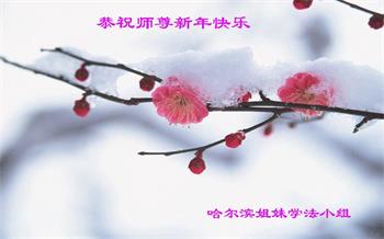 黑龙江省哈尔滨姐妹学法小组大法弟子恭祝师尊新年快乐!