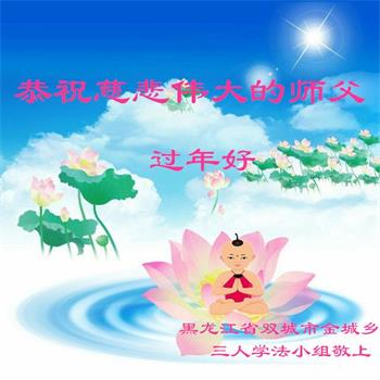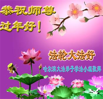 黑龙江省哈尔滨一学法小组大法弟子问候师父过年好!