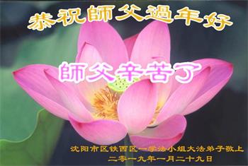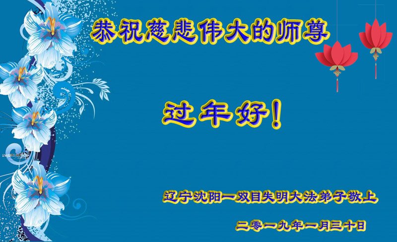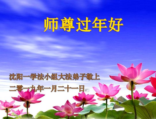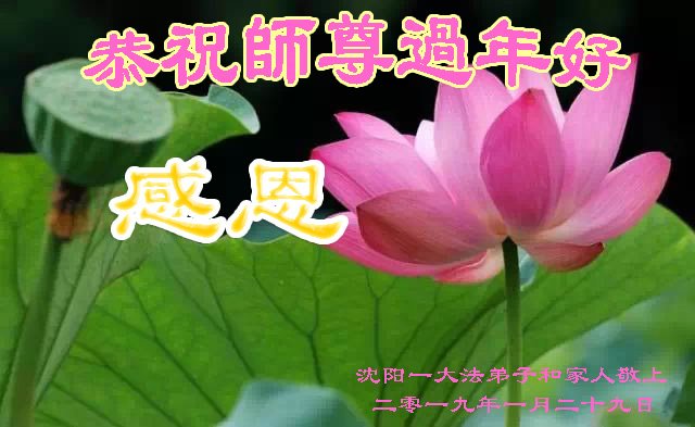 我们是沈阳市沈北新区夫妻同修,感谢师尊这20来年对我们的慈悲苦度,师尊您辛苦了,2019中国新年即将来临,我们夫妻同修祝师尊过年好。 2019年1月29日 辽宁省沈阳沈北新区一大法弟子给师尊拜年,师尊过年好!