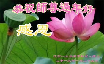 弟子深感师尊的慈悲保护!无以回报,只有尽自己的努力,做自己能做的事,让师尊多一份欢欣,少一份操劳。 辽宁省沈阳一大法弟子恭祝师尊新年好