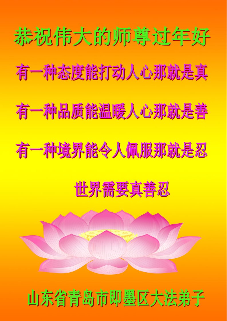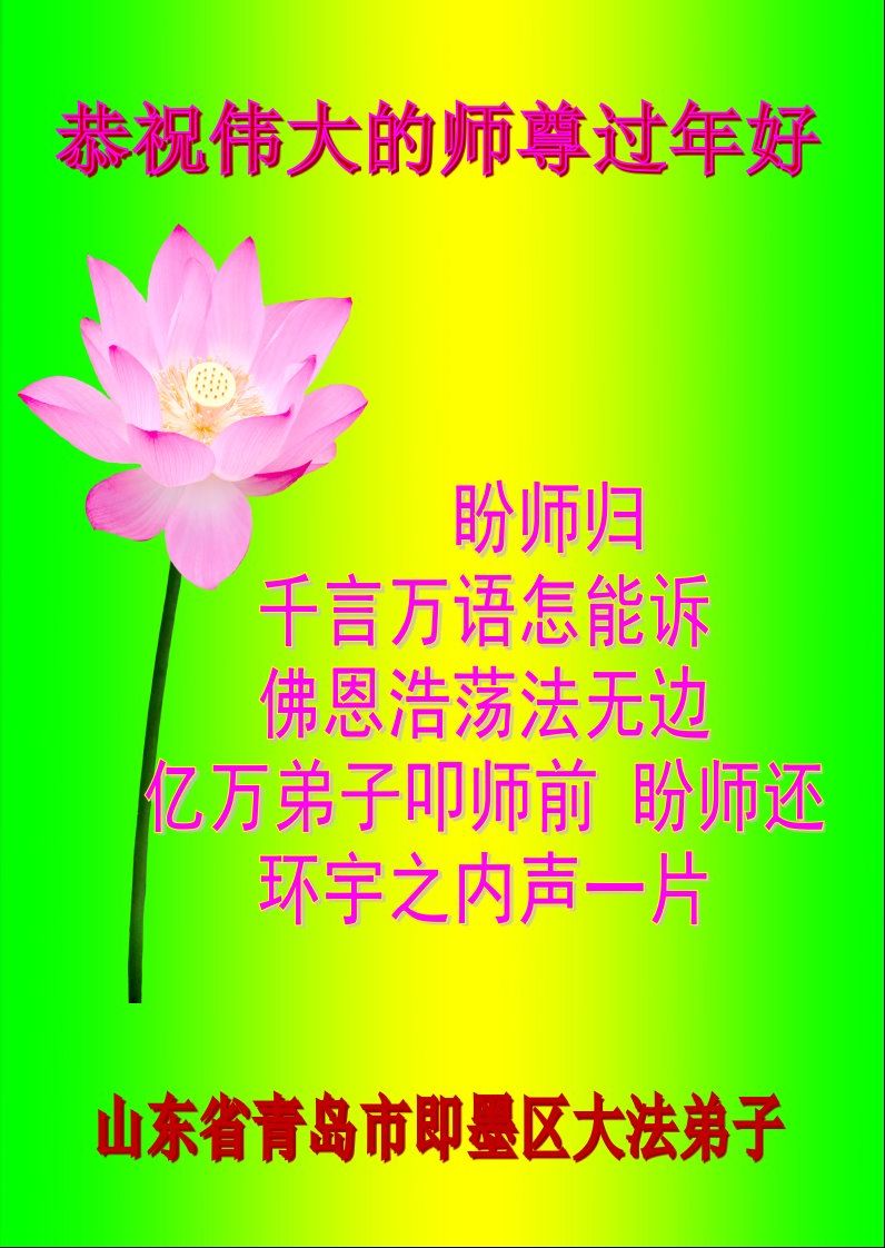 山东省青岛大法弟子恭祝师尊大年快乐!师父辛苦了!