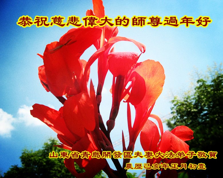 山东省青岛市大法弟子恭祝慈悲伟大的师尊新年快乐!