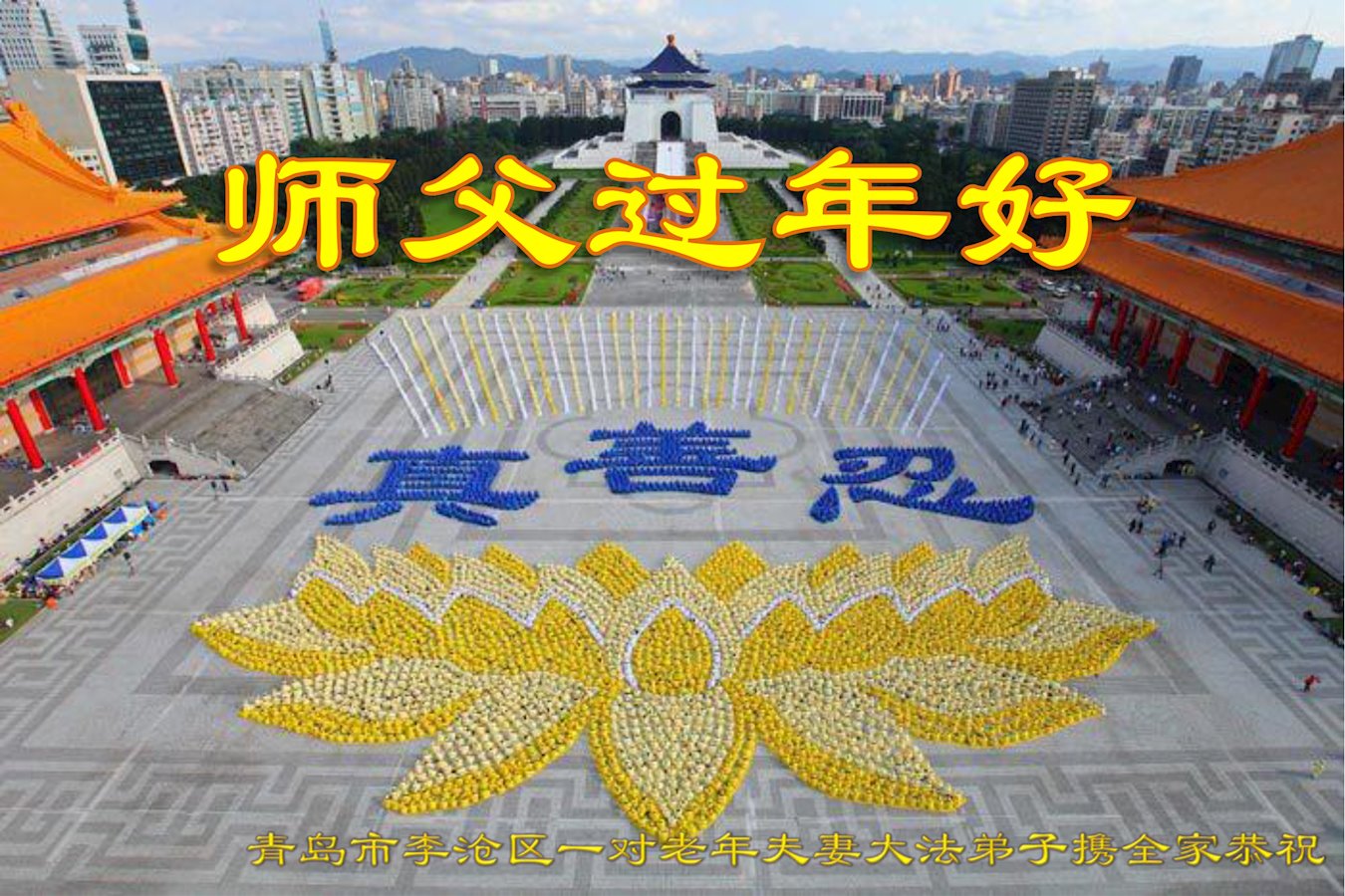 山东省青岛开发区夫妻大法弟子恭祝慈悲伟大的师尊过年好!