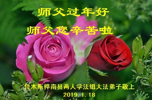 黑龙江省佳木斯桦南县俩大法弟子恭祝慈悲伟大的师父过年好