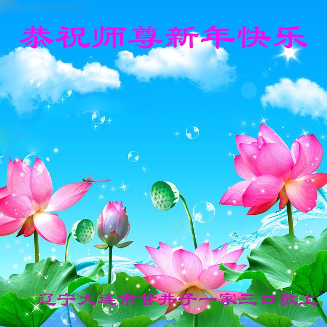 在新年来临之际,我代表我的全家衷心祝贺师尊新年快乐!感恩师尊的救度之恩! 辽宁大连市甘井子一大法弟子和家人恭祝师尊新年好!