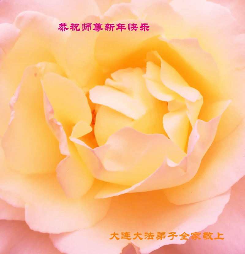 新年到了,我衷心祝愿伟大的师尊新年好!师尊辛苦了!用尽人间的语言也表达不了师尊的慈悲苦度! 辽宁大连市甘井子一大法弟子和家人恭祝师尊新年好!
