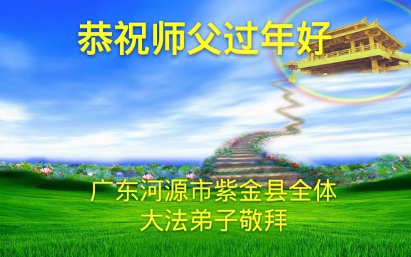 恭祝慈悲伟大的师尊新年好! 广东省江门市全体大法弟子 己亥年敬上 广东河源市紫金县全体大法弟子恭祝慈悲伟大的师尊过年好!