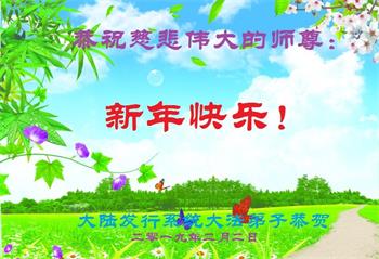 大陆新闻传媒界大法弟子给师父拜年!恭祝师尊新年好! 中国大陆一名海员大法弟子恭祝慈悲伟大的师尊新年快乐!