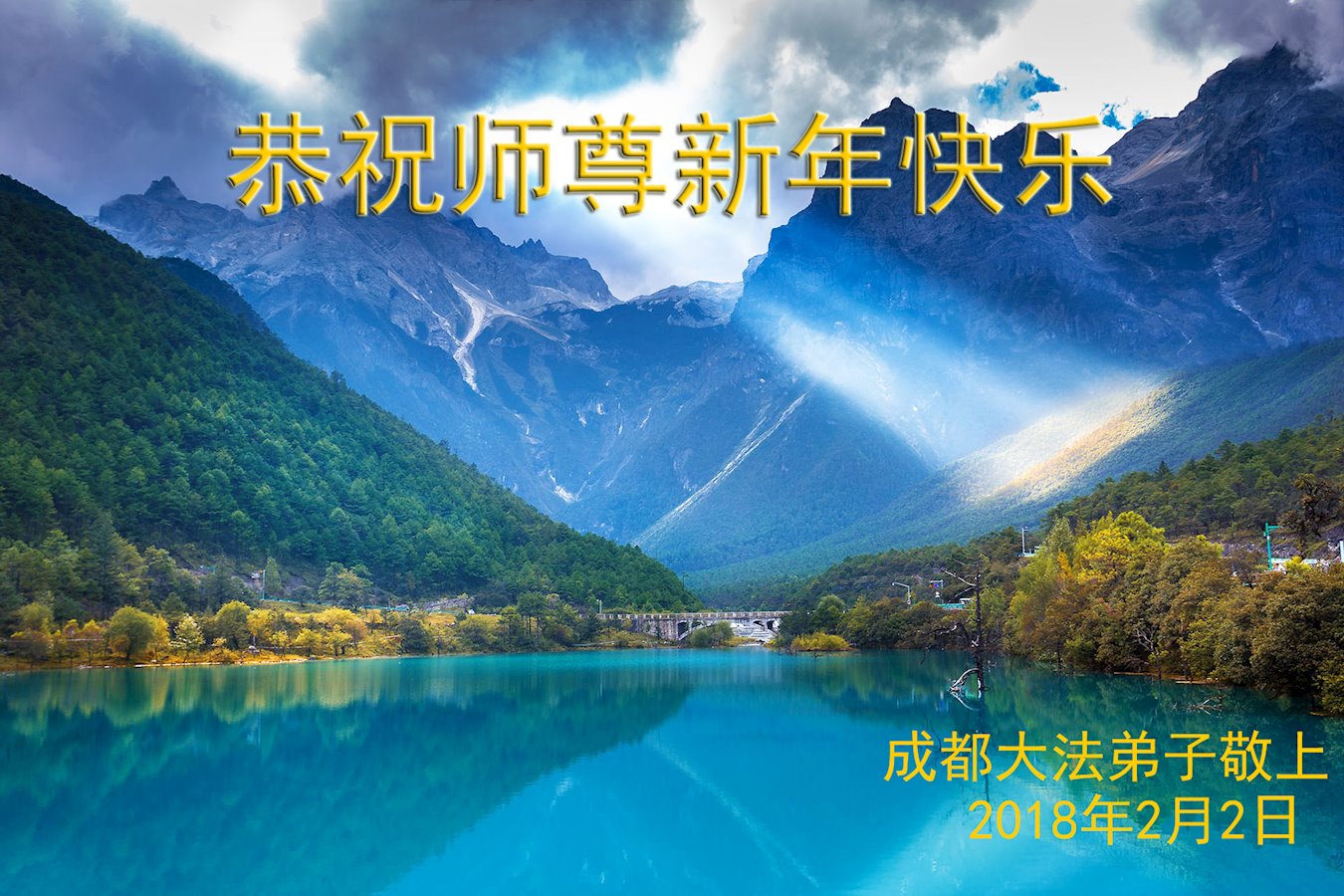 叩拜师尊!在新年即将到来之际,弟子十分想念师尊,恭祝师尊新年快乐!新年好! 郫都区全体大法弟子敬上 二零一九年二月一日 四川省成都一青年大法弟子恭祝慈悲伟大的师尊新年好!