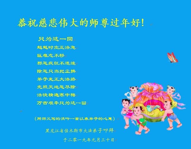【明慧网二零一九年二月四日】 黑龙江佳木斯大法弟子恭祝师尊过年好!