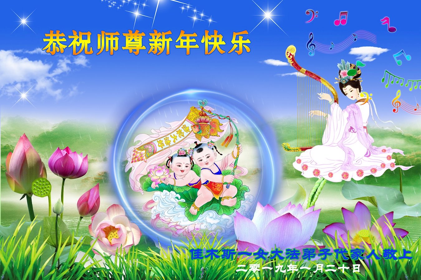 佳木斯一女大法弟子代家人敬上 二零一九年一月二十日 黑龙江佳木斯市全体大法弟子恭祝师尊新年快乐!