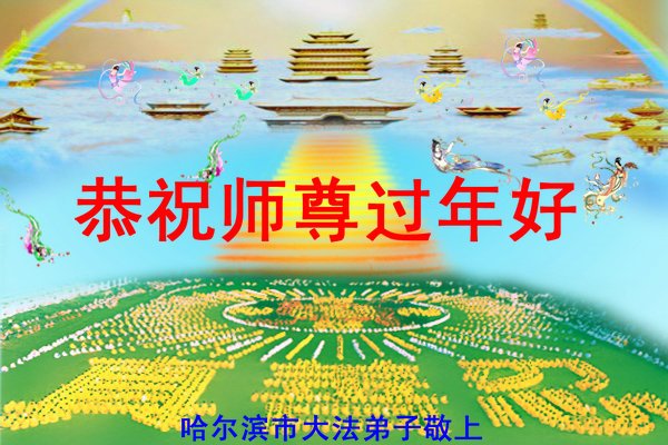 恭祝慈悲伟大的师尊过年好! 黑龙江省哈尔滨市双城区全体大法弟子敬祝! 黑龙江省哈尔滨大法弟子敬祝师尊新年好!