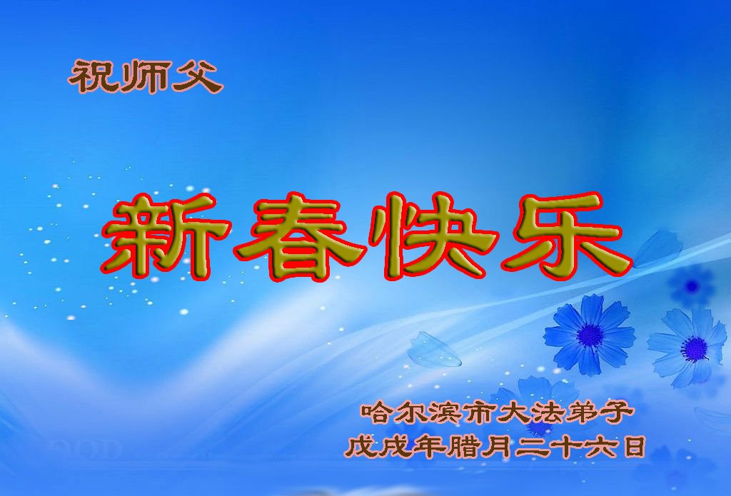 恭祝慈悲伟大的师父,新年好!在新的一年里,弟子一定要修好自己,做好三件事,祝师父新年快乐! 哈尔滨大法弟子敬上 黑龙江哈尔滨大法弟子一家恭祝师尊新年快乐!