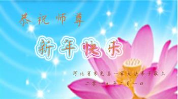 在新的一年里,请师父放心,我们一定会更加精進,整体配合好。做好三件事,兑现誓约,完成使命。跪拜师尊,祝师尊新年快乐! 河北省沧州市东光县一大法弟子恭祝慈悲伟大的师父新年快乐!