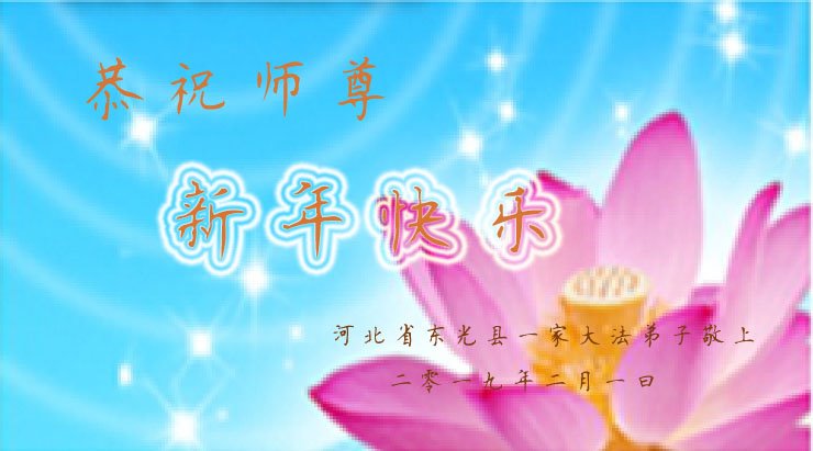恭祝慈悲伟大的师父:新年快乐! 河北省东光县一家大法弟子敬拜 二零一九年二月一日 河北邢台大法弟子恭祝师尊新年快乐!感恩师尊慈悲苦度!