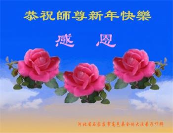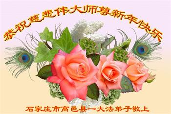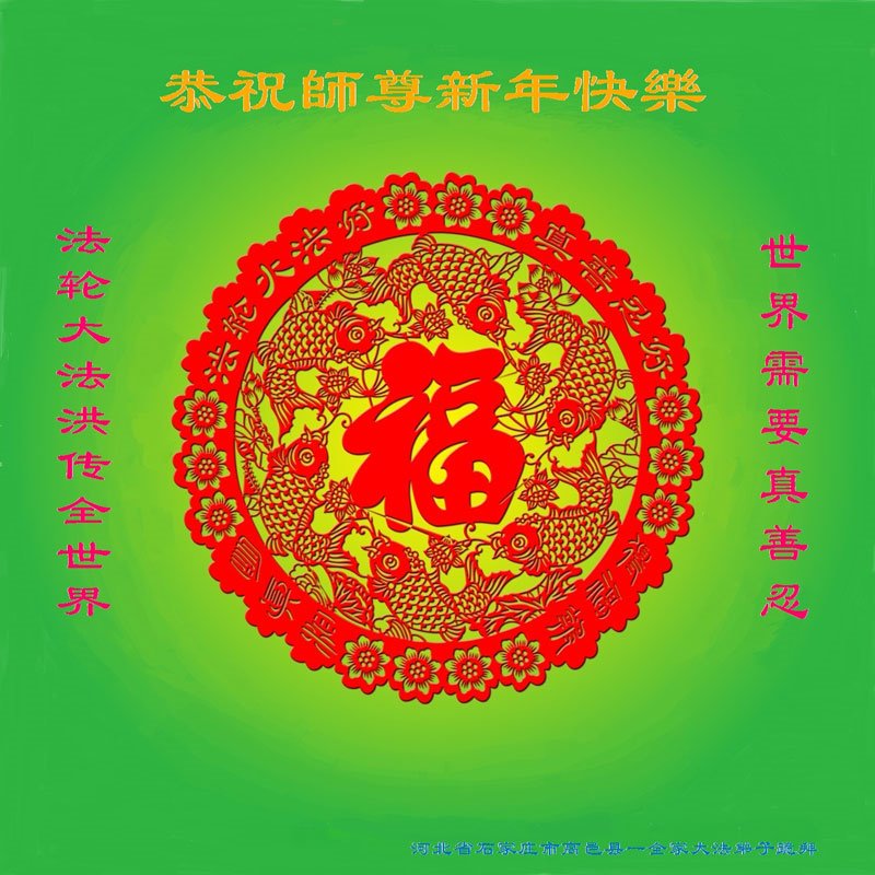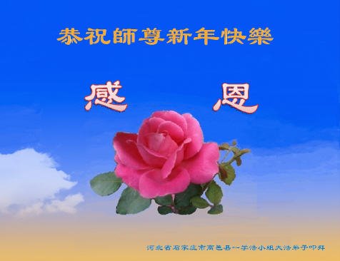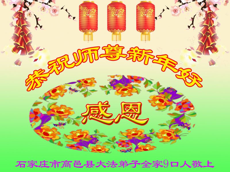 师尊过年好!弟子叩谢师尊的慈悲救度之恩!师尊您辛苦了!感谢师尊将法轮大法传予弟子,弟子才能知道生命的真正意义,才能在充满诱惑的俗世中归正自己,才能从末劫乱世中走出来。正法修炼中,师尊为我们指明了航向,弟子才能从最邪恶与严酷的迫害中走过来,才能明白自己担负的责任和史前的誓约。弟子谨记师尊交给的三件事,在正法修炼的最后时间里,多学法炼功,相互配合,互相帮助,整体提高,放下各种执着心,走正走好修炼的路,全力救度更多众生,圆满随师还!河北省石家庄市一学法小组大法弟子合十叩拜! 河北省石家庄市高邑县全体大法弟子恭祝师尊新年快乐!