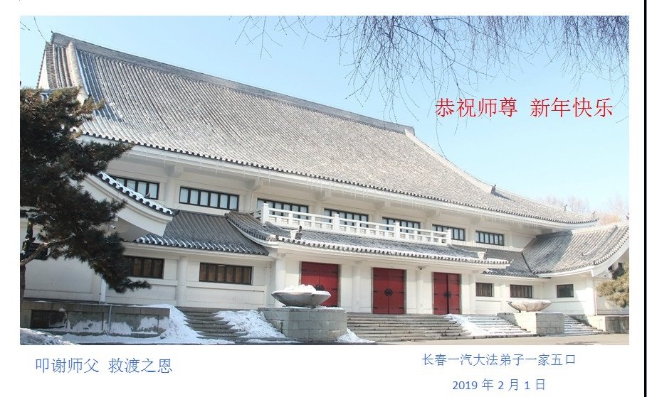 长春一汽大法弟子恭祝师尊新年快乐!叩谢师尊救度之恩! 2019年2月1日 吉林省长春一学法小组大法弟子恭祝师父新年快乐!