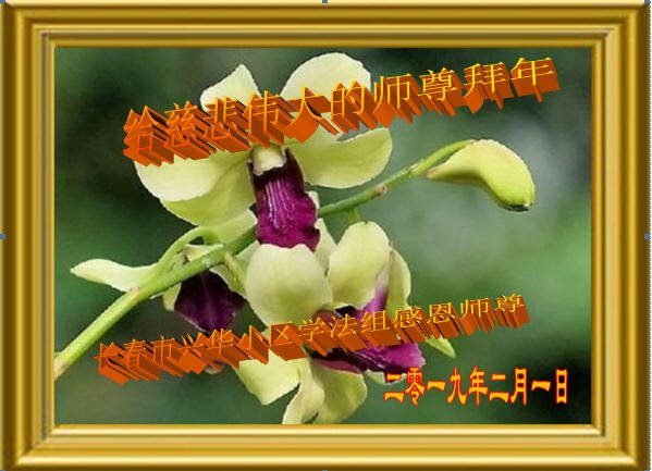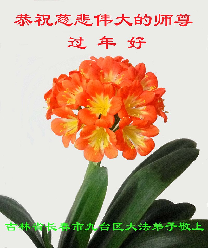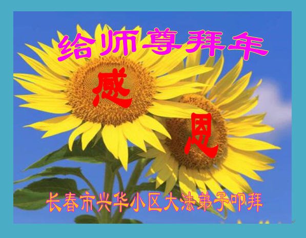 为了洪传大法,您日夜奔忙:为了众生得救,您为众生承担罪业:您给我们留下了上天的梯子,再造苍宇,无论我们将来成就在何处,都将永远感念您的浩荡洪恩。弟子跪拜恩师。 吉林长春大法弟子恭祝慈悲伟大的师尊过年好!