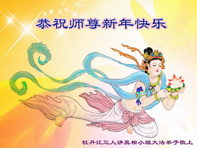 黑龙江省牡丹江三人讲真相小组大法弟子恭祝师尊新年快乐!