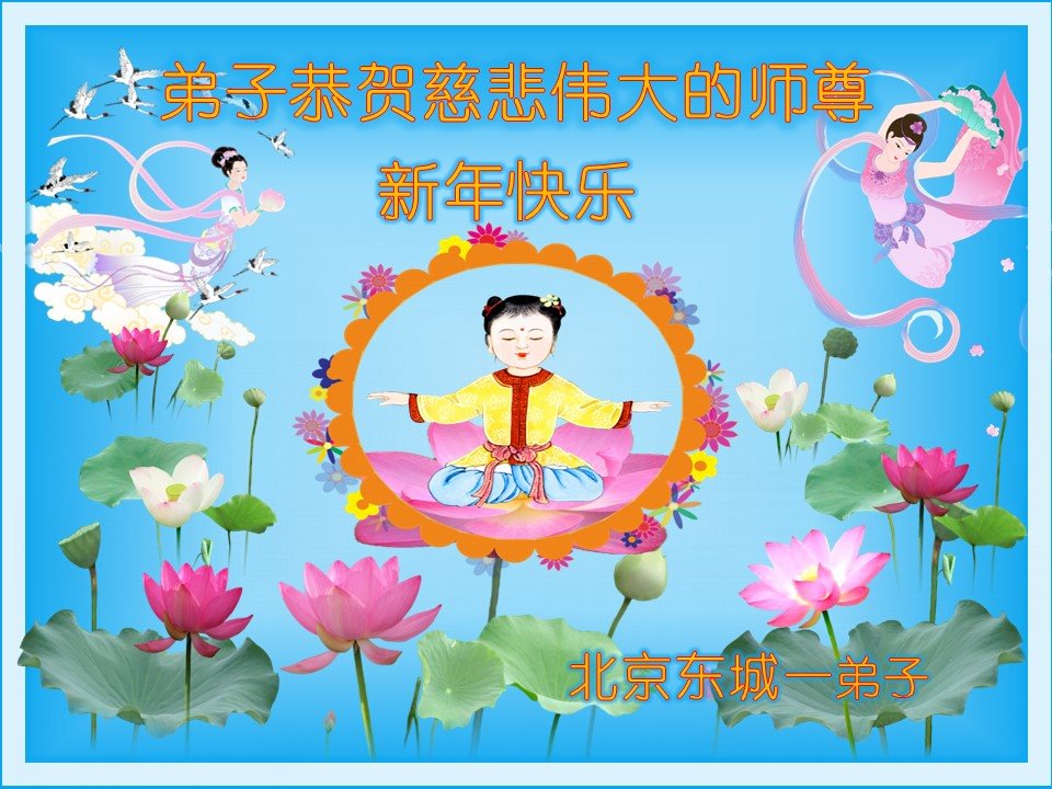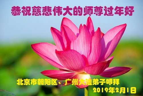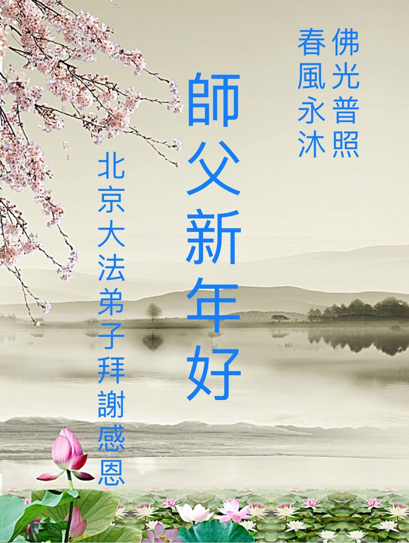 北京市朝阳区、广州大法弟子恭祝慈悲伟大的师尊过年好! 师尊您辛苦了!弟子们感恩师尊的慈悲苦度,新的一年一定更加精進。 北京丰台区一大法弟子恭祝师尊新年好!感恩师尊慈悲救度!