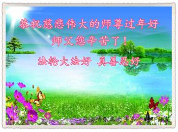 我们学法小组和上班的同修们祝师父新春快乐!在新的一年里,我们大法弟子们一定要否定旧势力的安排,走师父安排的路,共同精進,多救人,请恩师放心。叩谢师尊! 山东省济宁市一老年大法弟子全家恭祝师尊新年快乐!