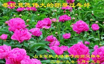 | 【明慧网二零一九年二月四日】(明慧网通讯员综合报道)“新年新春气象新 鸟儿飞鸣百花沁 佛光普照大世间 神州子民笑欢欣”。在中国军队陆、海、空现役的,军队院校、军医院在职的、离退休或复员的军人法轮功学员,在真、善、忍的指导下,修心向善,深感大法的博大精深,师父的慈悲普度,在传统大年到来之际,中国大陆军队系统大法弟子祝愿慈悲伟大的师尊新年好! 第二炮兵大法弟子们表示:“我们一定牢记师尊教诲,学好法修好自己,做好三件事多救人,兑现自己的誓约,做合格的正法时期大法弟子。” 总参复转军人大法弟子们说:“师尊从地狱中把我们捞起,我们每一步前行都凝聚着师尊无私且巨大的心血、承受、付出!风雨二十年,每一次跌倒,师尊都用宽大的臂膀将弟子扶起,又在鼓励、期盼中赋予弟子更大的能力,让弟子更加坚定地前行!……兑现誓约、完成使命是我们来时的愿望,义无反顾,精進再精進!” 中国大陆东部战区全体大法弟子恭祝慈悲伟大的师父新年好!