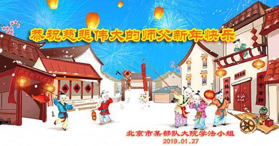 师父过年好! 空军大院、空军军休所、国防大学大法弟子叩拜师父。 二零一九年一月二十七日 陕西省西安市军队系统大法弟子跪拜师尊新年快乐!