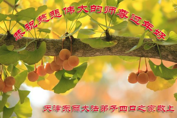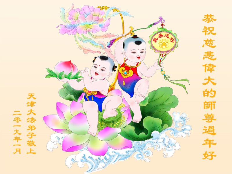 弟子们衷心祝愿师父过年好!在新的一年里,少些操劳,多些欣慰。 天津大法弟子恭祝慈悲伟大的师父过年好!