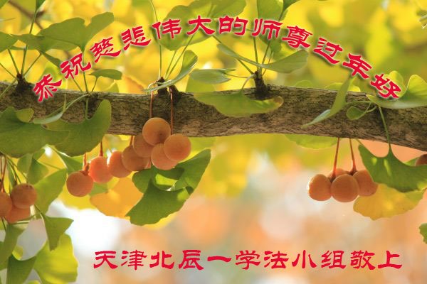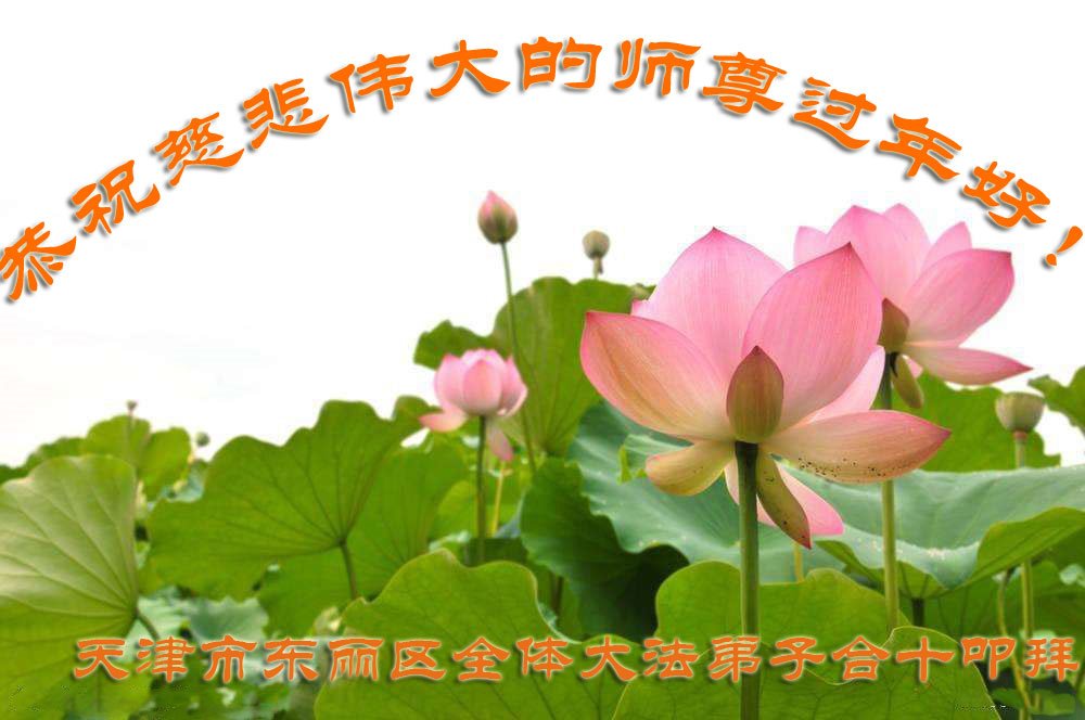 祝慈悲伟大的师尊新年快乐! 天津某小区大法弟子及家人恭祝 天津北辰一学法小组大法弟子恭祝慈悲伟大的师尊过年好!