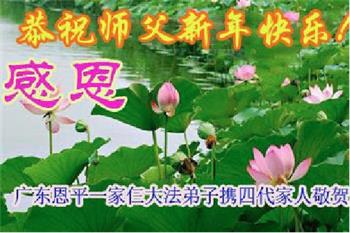 师父新年好!师父辛苦了!恭祝师父新年快乐!感恩师父慈悲苦度! 广东省江门市恩平市一家三大法弟子携四代家人恭祝师父新年快乐!