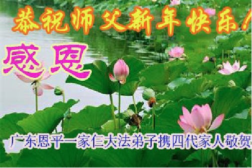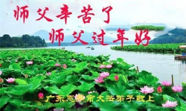 值此新春佳节即将来临之际,弟子远在万里之外恭祝师尊新春快乐! 在新的一年里,弟子唯有继续坚定正念,做好三件事。跪请师尊加持弟子! 广东河源连平全体大法弟子恭祝慈悲伟大的师尊新年快乐!