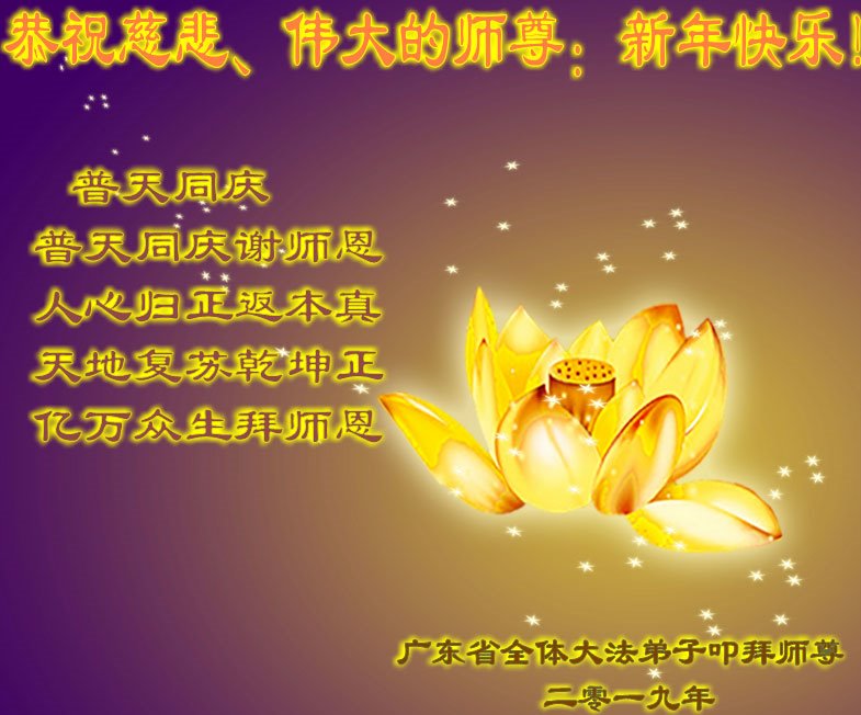 广东省全体大法弟子叩拜恭祝慈悲伟大的师尊新年快乐!