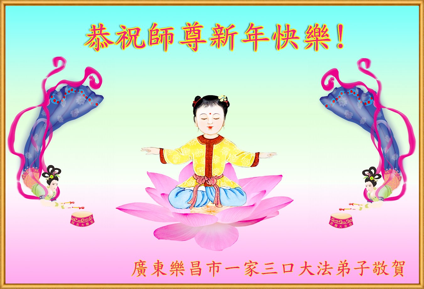 广东省韶关市乐昌市一家三口大法弟子恭祝慈悲伟大的师父新年快乐!