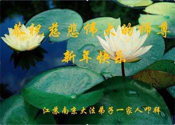 江苏省南京一大法弟子携全家人恭祝慈悲伟大的师尊新年快乐!