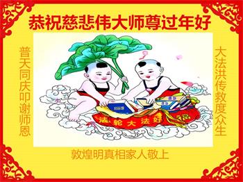 甘肃省酒泉市敦煌市大法弟子明真相家人恭祝慈悲伟大的师尊过年好!
