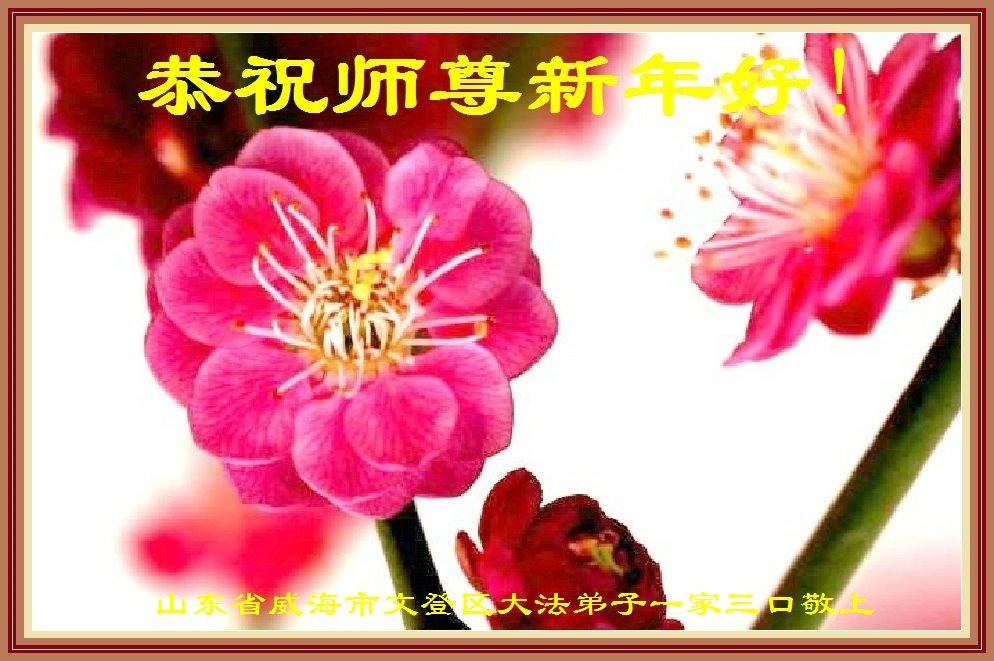 山东省威海市文登区大法弟子一家三口恭祝慈悲伟大的师尊新年好!