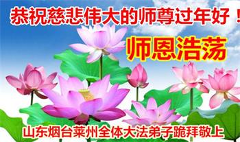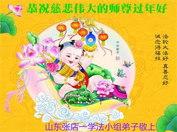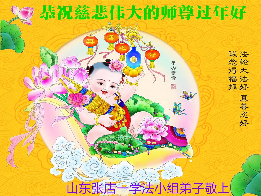 山东烟台莱州一名大法弟子恭祝慈悲伟大的师尊过年好! 山东邹平大法弟子恭祝慈悲伟大的师尊新年快乐!