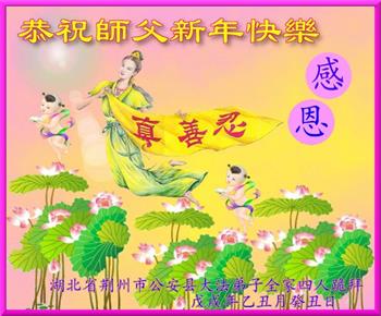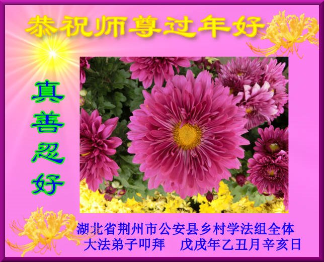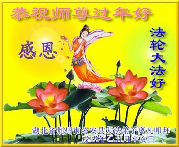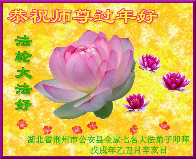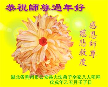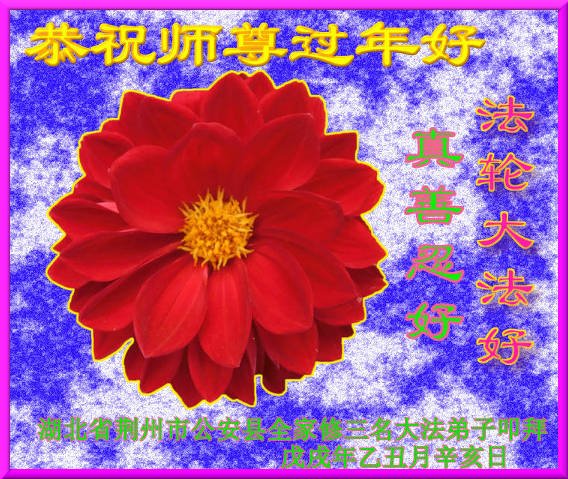 湖北省荆州市公安县一全家修三名大法弟子恭祝师尊过年好! 湖北省荆州市公安县一老年大法弟子恭祝慈悲伟大的师尊过年好!