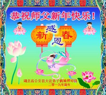 湖北省荆州市公安县一大法弟子全家四人恭祝师尊新年快乐! 湖北省荆州市公安县大法弟子俩妯娌恭祝师尊新年快乐!