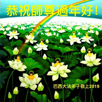 尊敬的师尊:又一个新年到来了,恭祝师尊新年好! 在这个混乱的人类社会,我们看到了乱中有序,只有法轮大法是净土。如果没有师尊的慈悲,人类已经不存在了。师尊是众生唯一的希望。大法弟子如何能助师救度更多的众生,是我们在这最后时刻的任务。身为大法弟子是最幸运的,知道了真相,得到了师尊的保护,大法引导我们走好我们的路。在遥远的阿根廷的大法弟子们感受到师父的苦心救度,我们明白师尊的心愿——让更多的世人在正法结束前能被救度。在不久的未来,真相大白时,全宇宙的生命也会无尽感激师尊无量慈悲。在己亥年中国新年来临之际,我们衷心祝师尊新年快乐! 阿根廷全体大法弟子敬上! 巴西大法弟子恭祝伟大的师尊过年好!