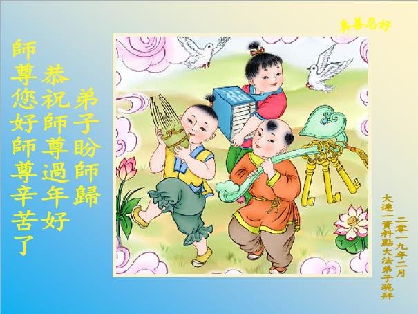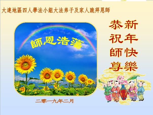 【明慧网二零一九年二月五日】 辽宁省大连市甘井子区柳树学法小组大法弟子恭祝师父过年好!