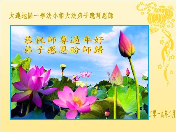 辽宁省大连市大法弟子向慈悲伟大的师父拜年!师父过年好!