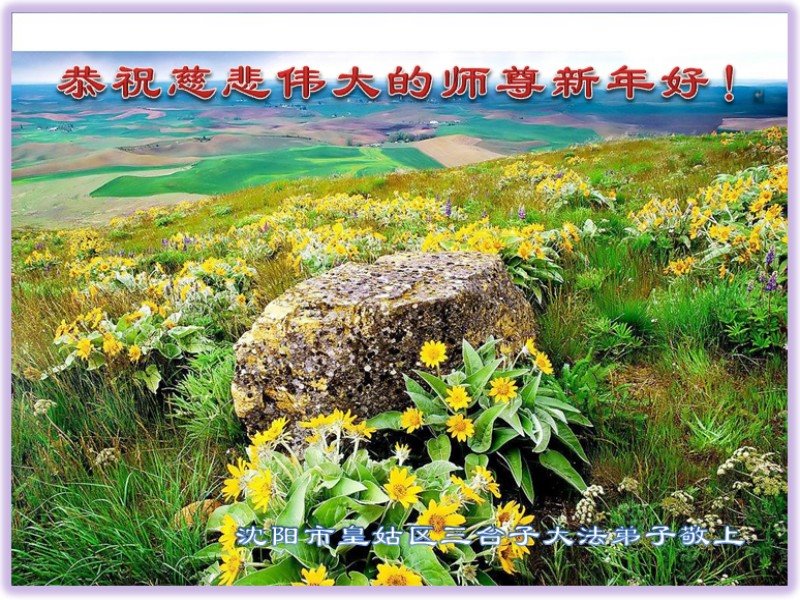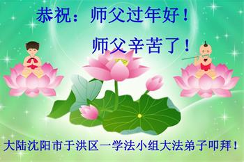 师父过年好!师尊辛苦了!感谢师尊的慈悲苦度!在新的一年里,我们要多学法、学好法,做好三件事,圆满随师还。弟子给师父叩头了! 辽宁省沈阳大法弟子恭祝师父新年快乐!