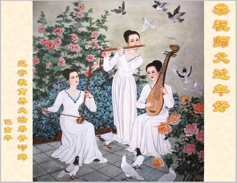 转眼间得法已二十一年了,在师父的慈悲保护下,我们走到了今天。多年以来,亲眼目睹了身边那么多的法轮大法修炼者,在“真、善、忍”法理的指引下,在各行各业中尽职尽责的工作,在家庭、在单位、在社会上以自己的言行向世人证实着法轮大法的美好,道德越来越高尚,在这样一个乱世,唯有伟大的佛法才能真正做到这一点,唯有法轮大法才能改变人心,真正使人道德回升,衷心希望世人都能明真相,得救度!请师尊放心,弟子一定走好最后的路,让师父少操心。叩拜师尊! 辽宁省沈阳市教育系统大法弟子恭祝慈悲伟大的师尊新年好!