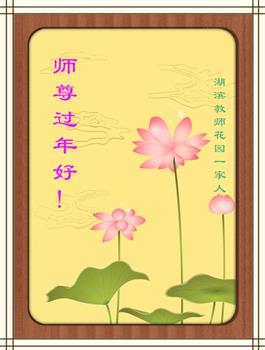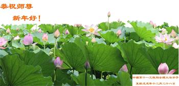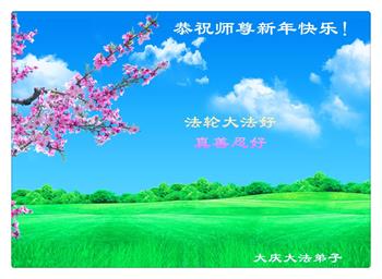恭祝慈悲伟大的师尊过年好!弟子们要精進实修,做好三件事,完成使命,同时家人也相信大法得了福报。 盘锦市辽河油田采油厂 河南南阳油田大法弟子向师尊拜年!恭祝慈悲伟大的师尊过年好!