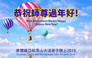 师尊过年好 时间如水流 一去不复返 修炼救人中 喜庆中国年 大法在洪传 法轮天地旋 做好事三件 随师返家园 塞尔维亚和黑山大法弟子恭祝师尊过年好!